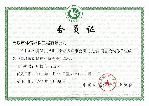 中國環(huán)境保護(hù)產(chǎn)業(yè)協(xié)會 會員證